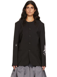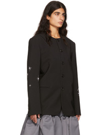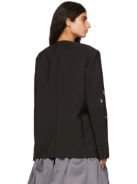 Polyester twill jacket. · Crewneck · Button closure · Padded shoulders · Welt pockets · Graphic printed at sleeves · Central vent at back hem · Full satin lining Supplier color: Black Body: 100% polyester. Linin: 52% polyester, 48% rayon.
