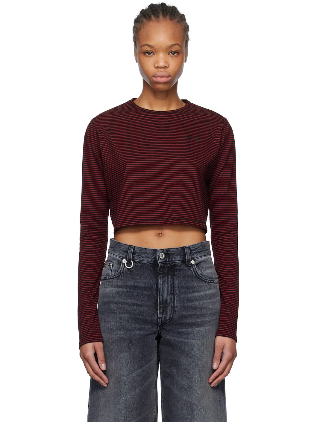 Cotton jersey T-shirt. Stripes throughout. · Crewneck · Logo embroidered at chest · Cropped hem Supplier color: Black 100% cotton. Made in South Korea 251327F110004