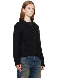 Knit acrylic-blend cardigan. · Sailor collar · Y-neck · Button closure · Logo hardware at chest · Flap pockets · Rib knit hem and cuffs Supplier color: Black 75% acrylic, 9% rayon, 8% wool, 8% alpaca. Made in South Korea 242327F095007