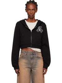 Cotton French terry hoodie. · Zip closure · Logo graphic printed at chest and back · Patch pockets at front · Cropped hem · Rib-knit hem and cuffs Supplier color: Black Body: 100% cotton. Trim: 95% cotton, 5% polyurethane. Made in South Korea 252327F097003