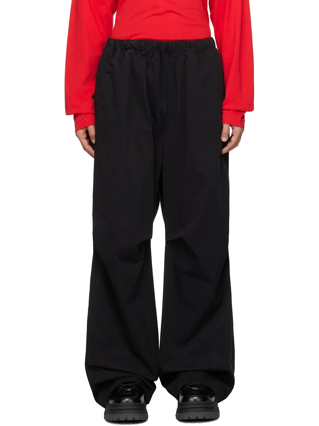 Wide-leg cotton-blend twill trousers. · Concealed drawstring at elasticized waistband · Two-pocket styling · Embroidered logo at front · Tucks at knees Supplier color: Black 65% cotton, 26% polyester, 9% nylon. Made in South Korea 242327F087004