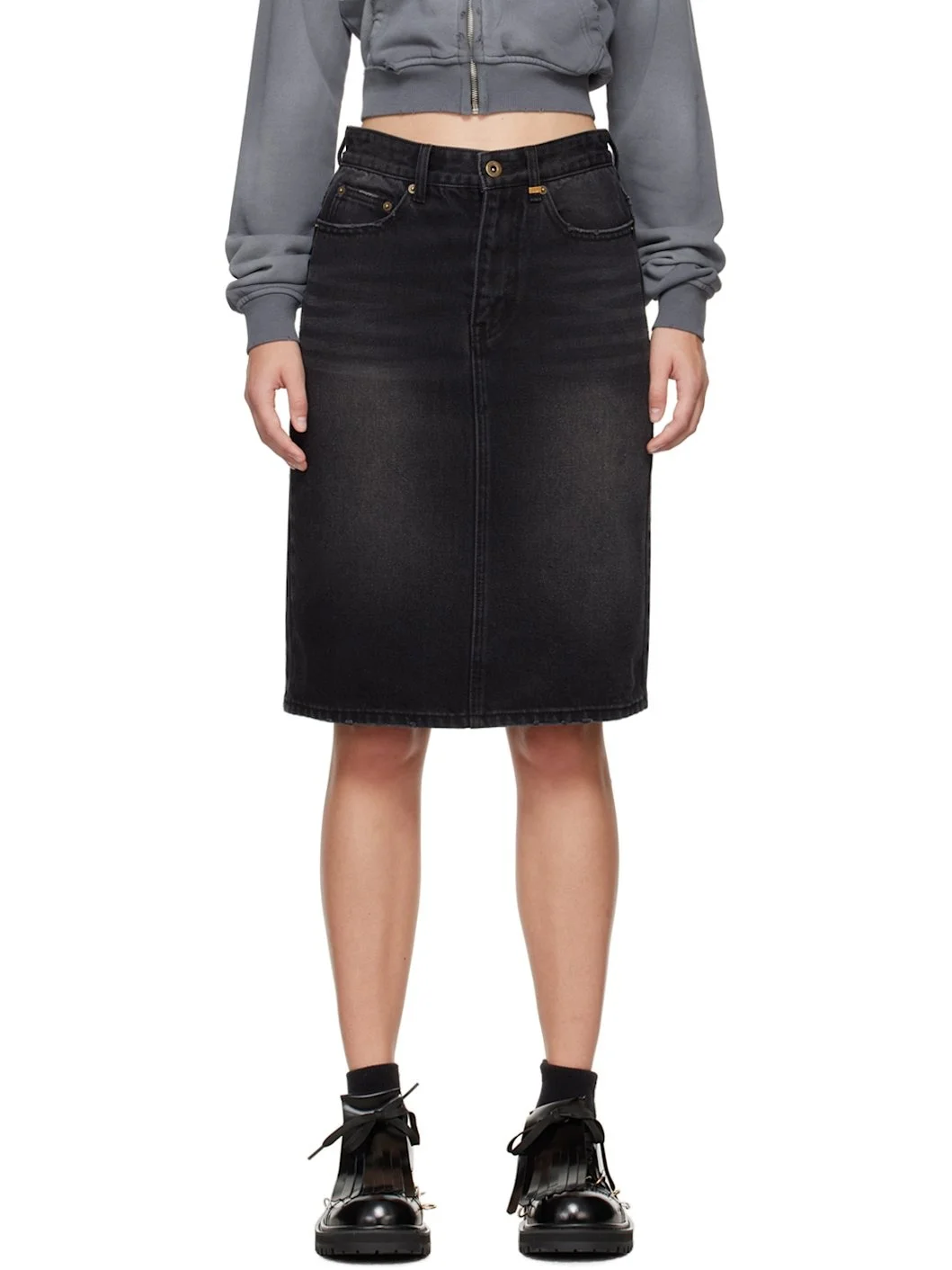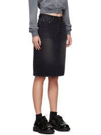 Black Washed Denim Midi Skirt