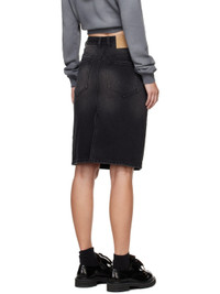 Garment-washed non-stretch cotton-blend denim skirt. Fading, whiskering, and subtle distressing throughout. · Belt loops · Logo plaque at front belt loop · Five-pocket styling · Zip-fly · Logo patch at back waistband · Central vent at back hem · Logo-engraved antiqued gold-tone hardware Supplier color: Black 72% cotton, 26% polyester, 2% regenerated cellulose fibre. Made in China 242327F092000