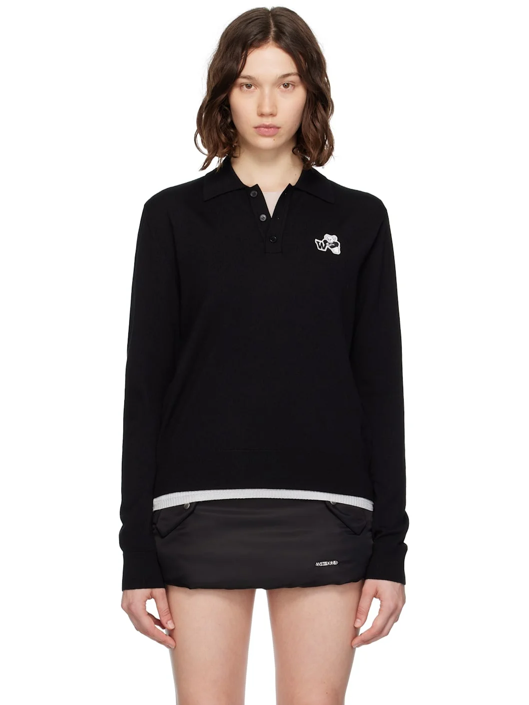 Knit wool polo. · Rib-knit spread collar and cuffs · Three-button placket · Logo patch at chest Supplier color: Black 100% wool. Made in South Korea 252327F108000