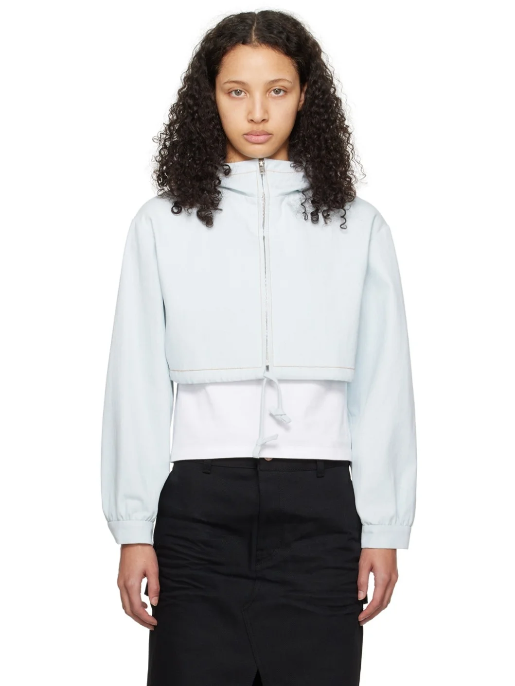 Non-stretch denim hoodie. Fading throughout. · Drawstring at hood and hem · Zip closure · Cropped droptail hem · Single-press-stud barrel cuffs Supplier color: Ice 100% cotton. Made in South Korea 241327F097002