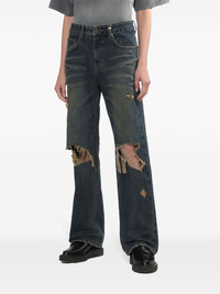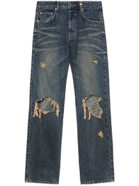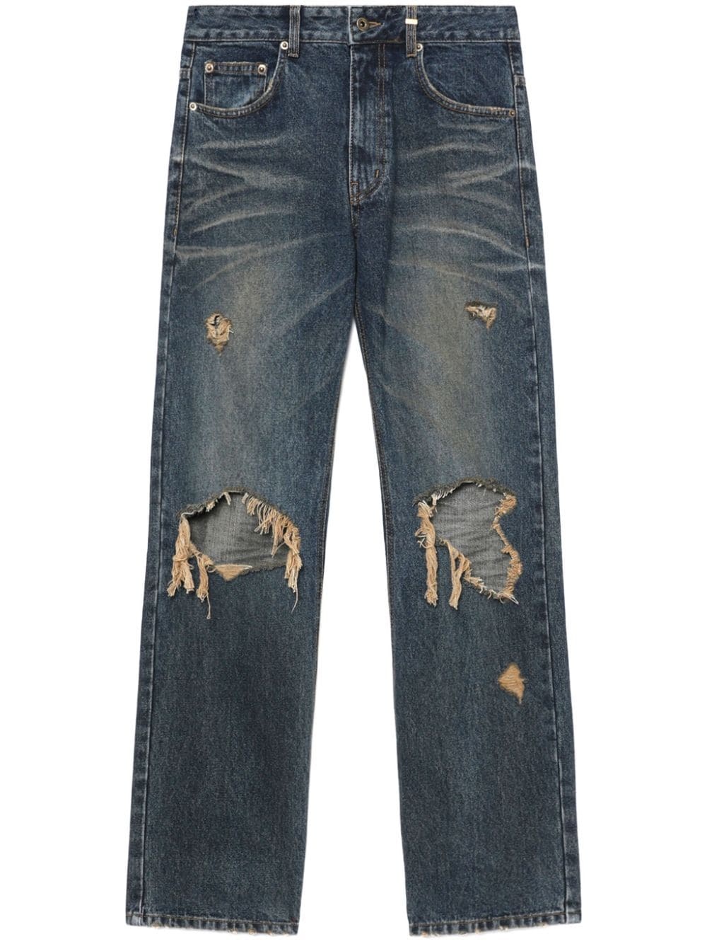 distressed jeans Highlights - Blue - Cotton blend - Denim - Distressed finish - Concealed fly and button fastening - Belt loops - Classic five pockets - Whiskering effect - Straight leg Imported Composition Cotton 97%, TENCEL™ 3%