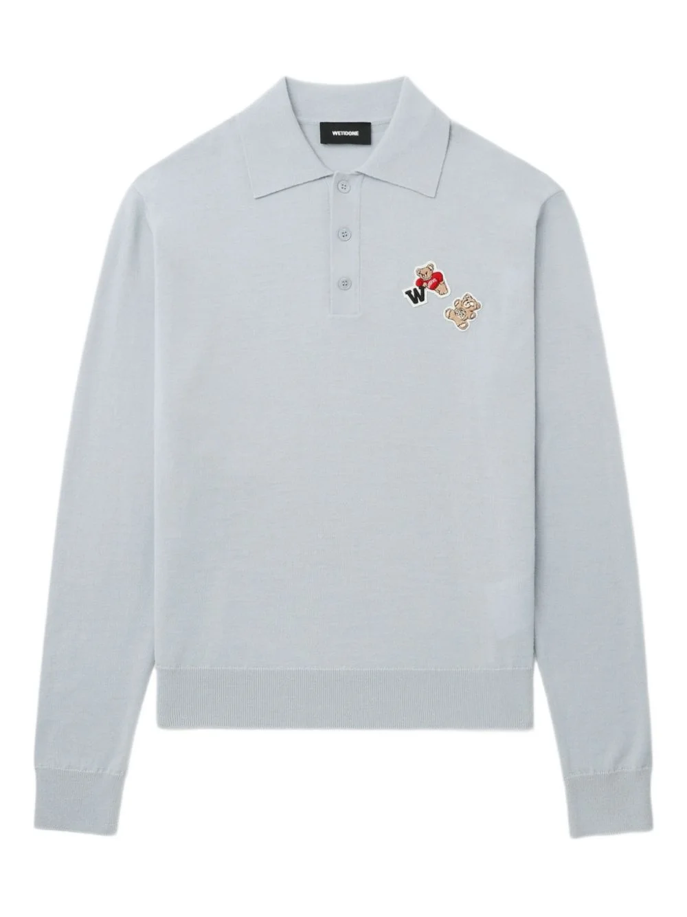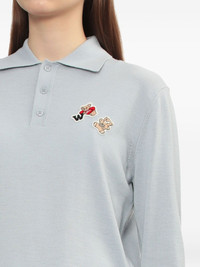 bear-embroidered polo-neck sweater Highlights - Light grey - Polo neck - Long sleeves - Button fastening - Ribbed hem - Embroidered bear motif Imported Composition Wool 100% Washing instructions Read Manufacturer Guidelines