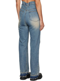Non-stretch denim jeans. Whiskering, fading, and distressing throughout. · Mid-rise · Belt loops at sweetheart waist · Five-pocket styling · Zip-fly · Frayed cuffs · Logo-engraved brass- and gold-tone hardware Supplier color: Blue 100% cotton. Made in South Korea 242327F069007