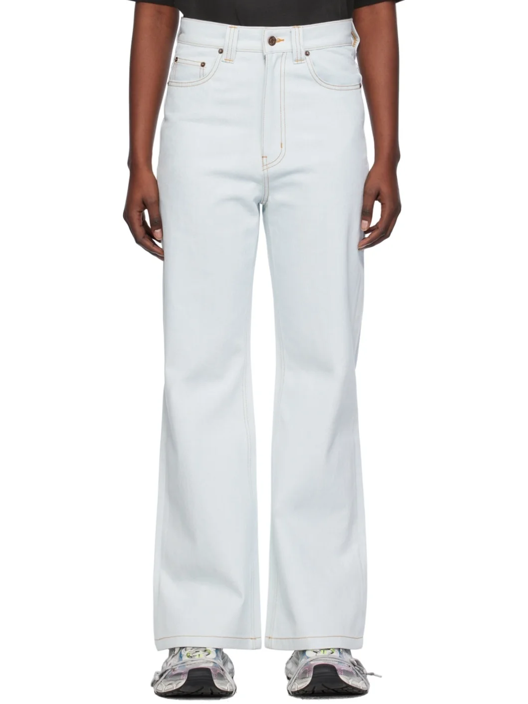 Non-stretch denim jeans. · Low-rise · Belt loops · Five-pocket styling · Zip-fly · Logo-engraved bronze-tone hardware · Contrast stitching in yellow Supplier color: Ice 100% cotton. Made in South Korea 241327F069000