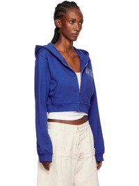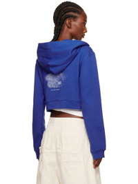 Cotton French terry hoodie. · Zip closure · Logo graphic printed at chest and back · Patch pockets at front · Cropped hem · Rib-knit hem and cuffs Supplier color: Blue Body: 100% cotton. Trim: 95% cotton, 5% polyurethane. Made in South Korea 252327F097002
