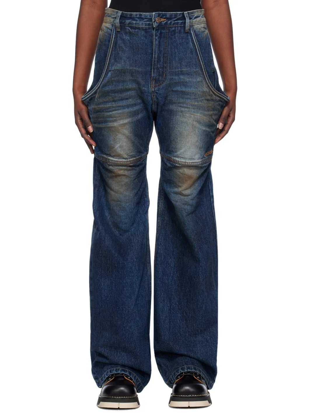 Non-stretch denim jeans. Fading and whiskering throughout. · Belt loops · Four-pocket styling · Zip-fly · Logo embroidered at front · Integrated sculptural wire at outseams · Logo-engraved bronze-tone hardware Supplier color: Navy 100% cotton. Made in South Korea 241327F069005