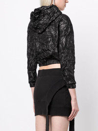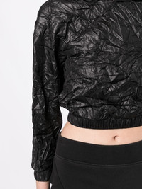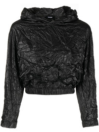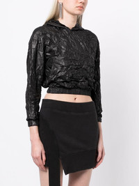 crinkle-effect cropped hoodie Highlights - Black - Crinkled finish - Three-quarter length sleeves - Elasticated cuffs and hem - Classic hood - Cropped Imported Composition Body: Polyester 100% SIZE & FIT Model measurements Height 5 ft 10 in(1.77 m) Bust/Chest 31.88 in(81 cm) Hips 33.85 in(86 cm) Waist 24.01 in(61 cm) FittingInformation Designed for a slim fit that sits just away from the body offering a close yet comfortable fit Cropped in length Made from a lightweight non-stretch fabric This piece fits true to size – take your usual size Washing instructions Dry Clean Only