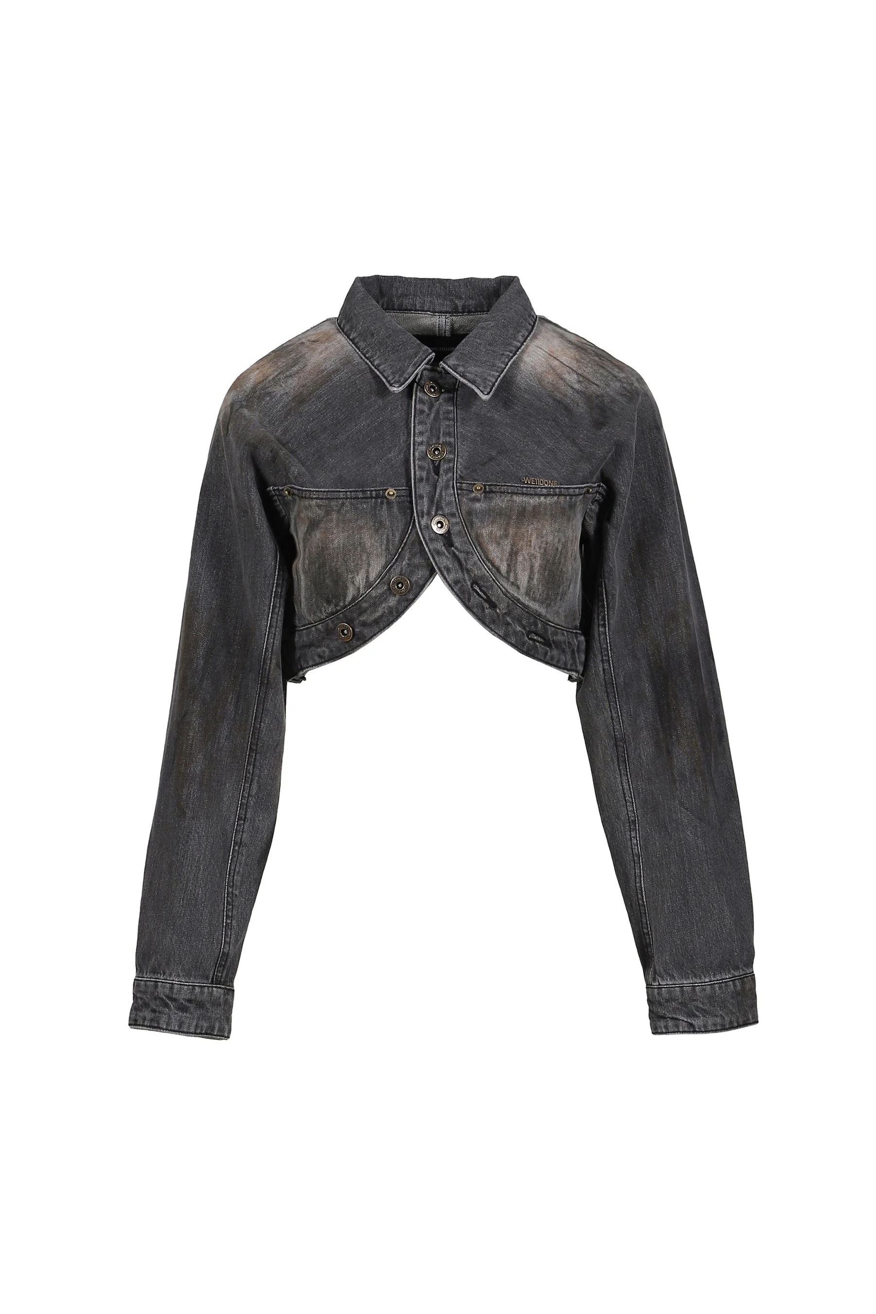 Sizing Size Length Pit to Pit Sleeve Length XS 38cm 41cm 80cm S 39cm 42cm 81cm Product Detail - Gender: WOMEN - Designer: We11done - Categories: WOMENS DENIM JACKET We11done denim jackets - Material: COTTON 100% - Model Number: wd-dj0-26-310-w