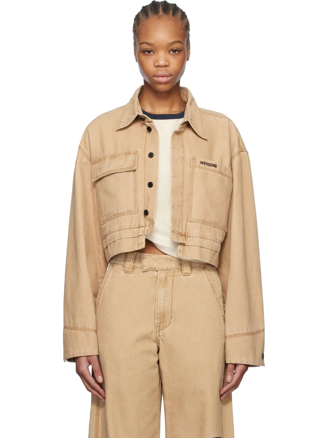 Beige Cropped Work Jacket
