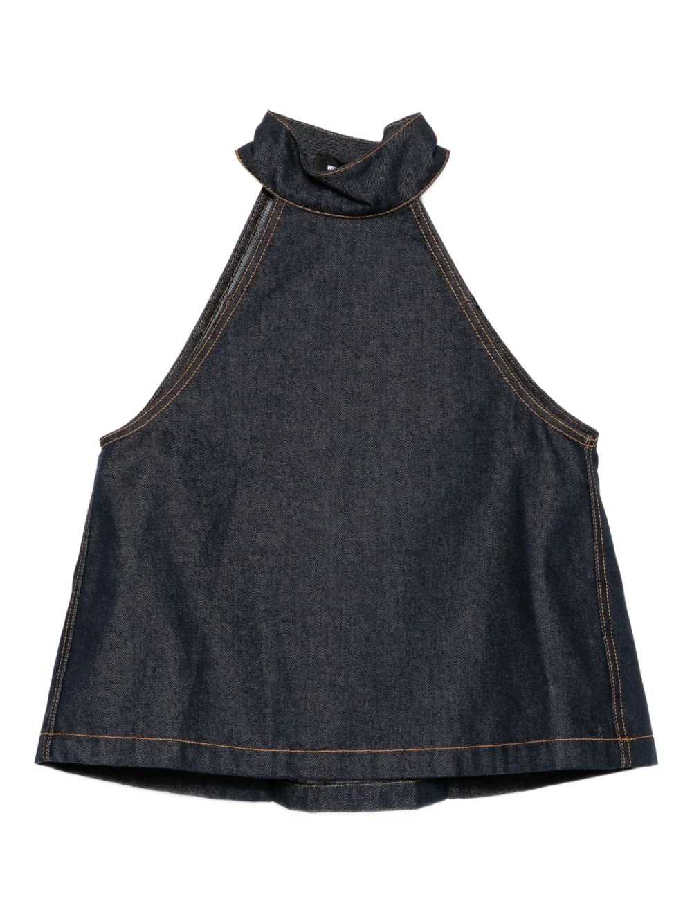 denim top Highlights - Navy blue - Side press-stud fastening - Box-pleat detail - Halterneck - Sleeveless Imported Composition Cotton 70%, Polyester 30% Washing instructions Dry Clean Only