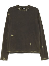 faded effect T-shirt Highlights - Olive green - Crew neck - Long sleeves - Straight hem - Silver-tone hardware Imported Composition Cotton 96%, Spandex/Elastane 4% Outer: Cotton 100%