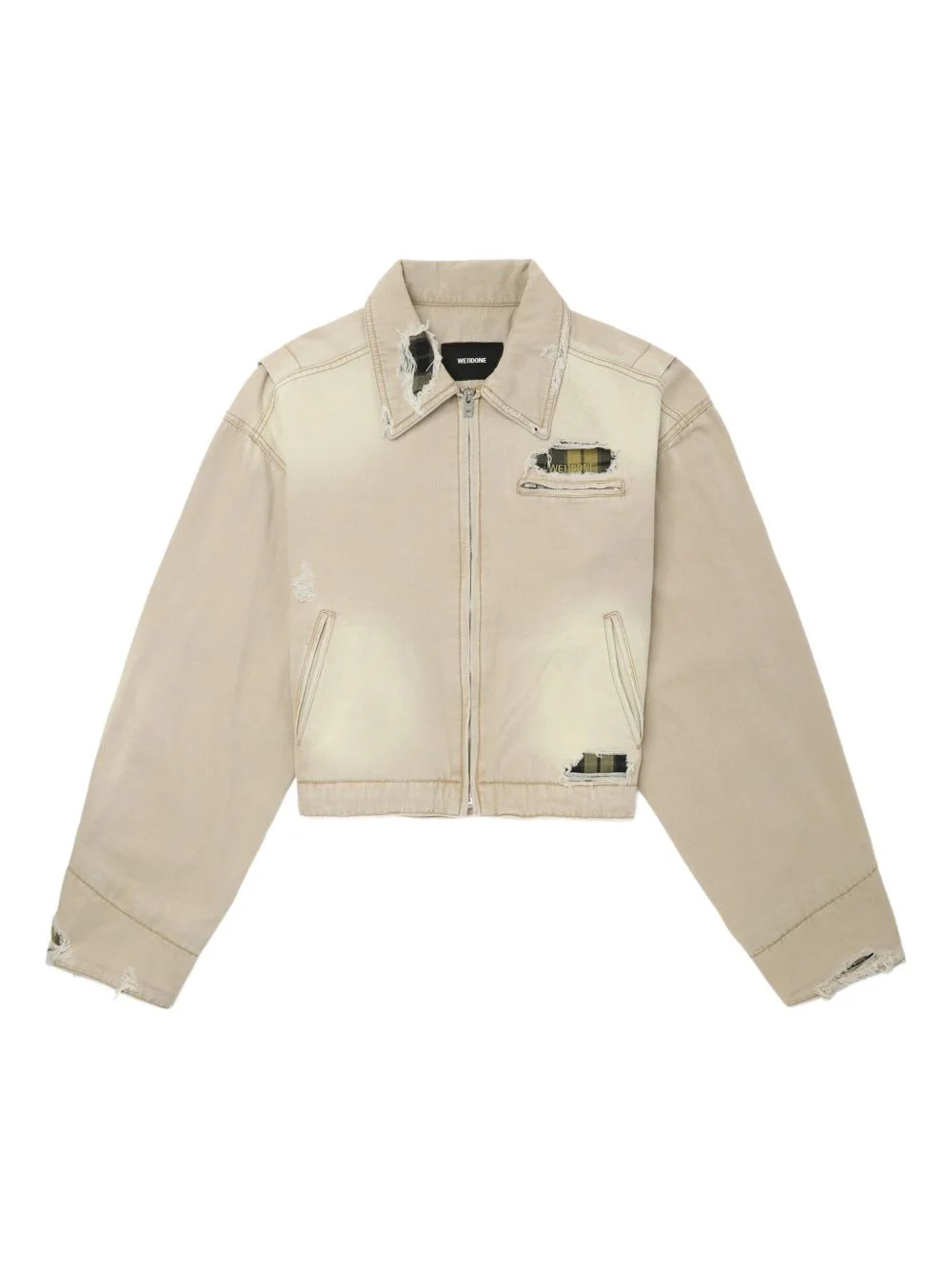 frayed plaid-panel jacket Highlights - Beige - Distressed detailing - Plaid panel - Zip fastening - Frayed edges Imported Composition Cotton 100% Washing instructions Read Manufacturer Guidelines