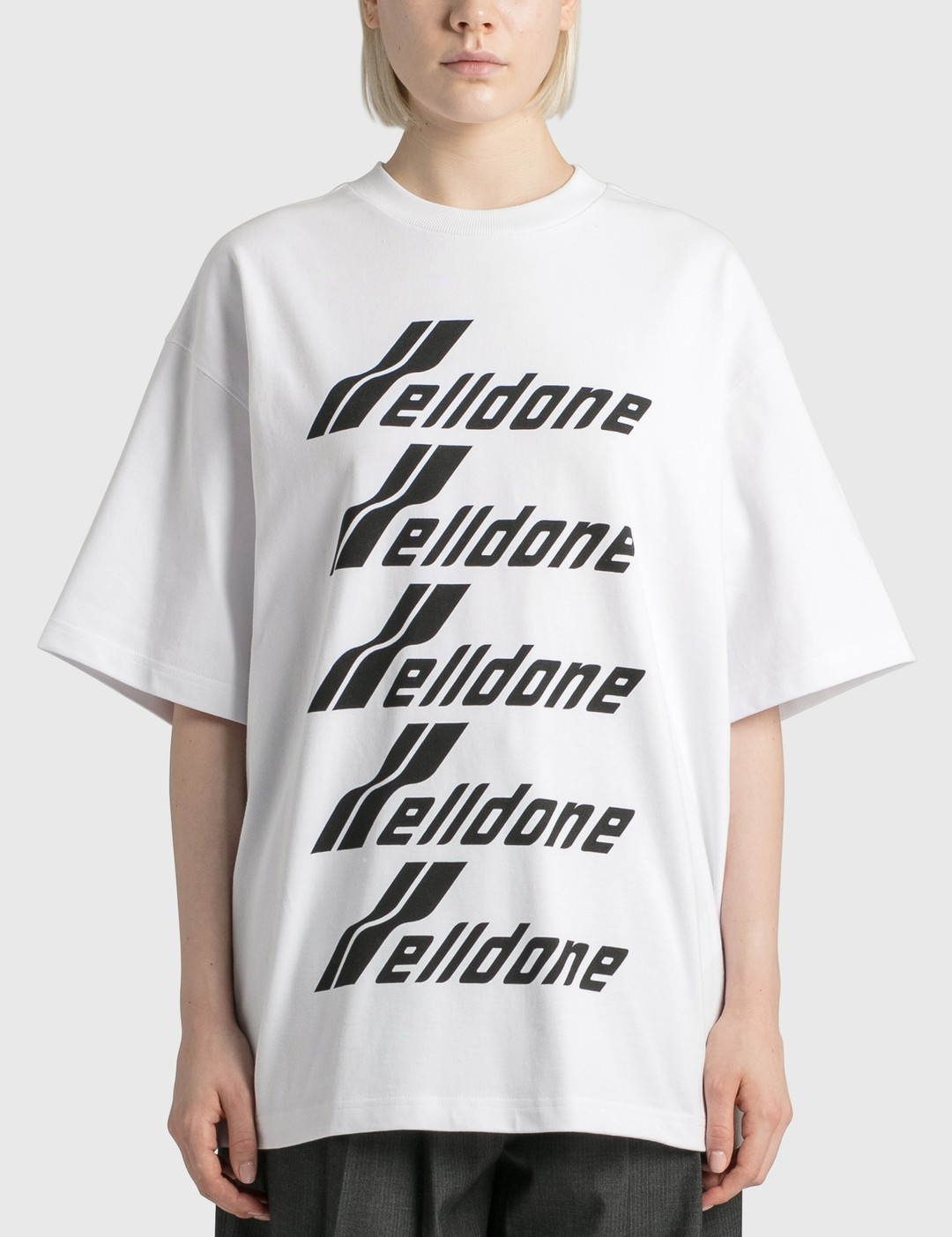 - We11done - Front Logo T-shirt - Short sleeve - Crewneck - Graphic logos at front - Straight hem - Color: White - Material: 100% Cotton - See more - SS T-Shirts - , - T-Shirts - and - Clothing SIZING - Model wears size XS - Model measures: Height 170cm, Chest 29”/75cm, Waist 22”/57cm, Hip 33”/86cm