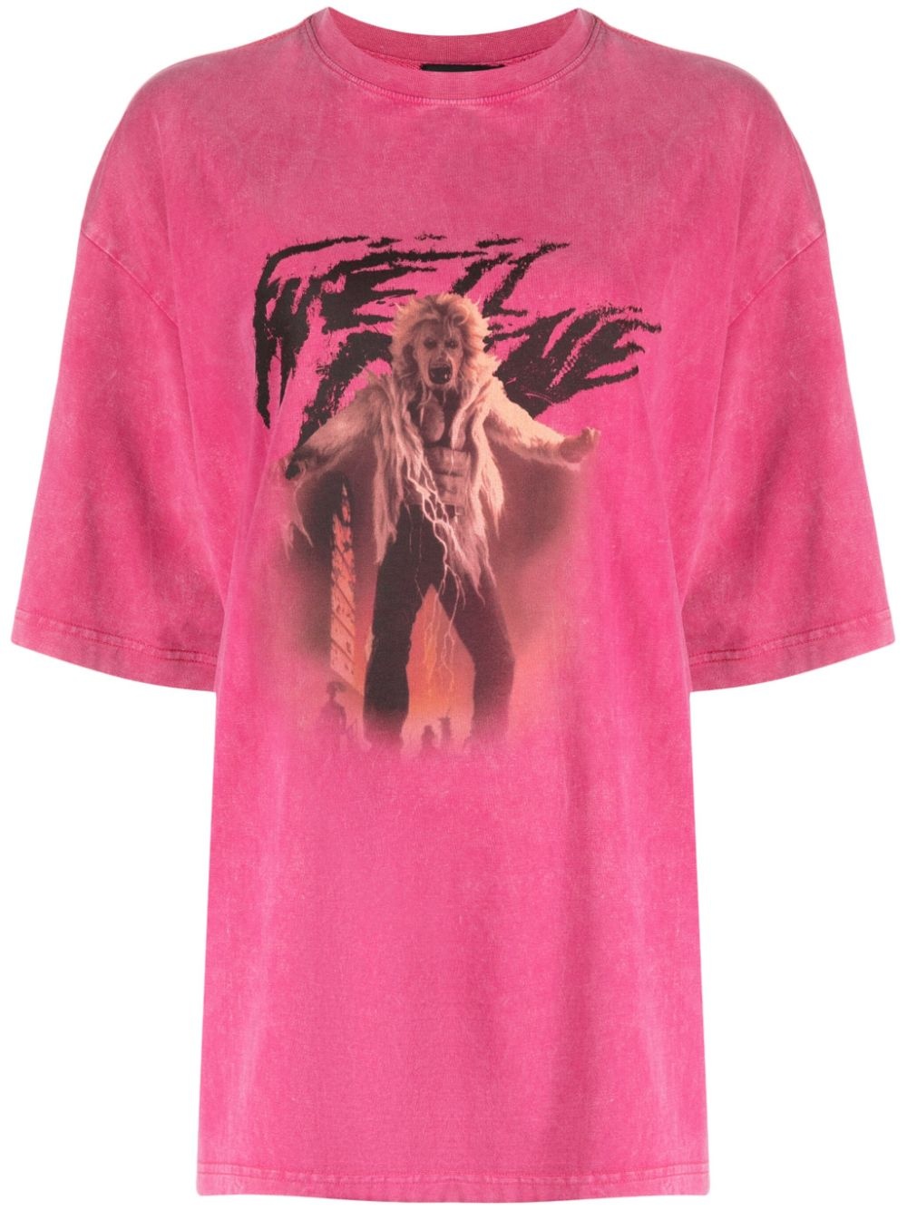 graphic-print cotton T-shirt Highlights - Pink - Cotton - Graphic print to the front - Logo print at the hem - Crew neck - Short sleeves - Straight hem Imported Composition Outer: Cotton 100% Cotton 96%, Polyurethane 4% SIZE & FIT Model measurements Height 5 ft 10 in(1.77 m) Bust/Chest 30.31 in(77 cm) Hips 33.85 in(86 cm) Waist 25.19 in(64 cm) FittingInformation Designed for an oversized fit, offering additional room throughout Made from a midweight non-stretch fabric, this piece offers minimal elasticity when worn This piece fits true to size – take your usual size