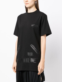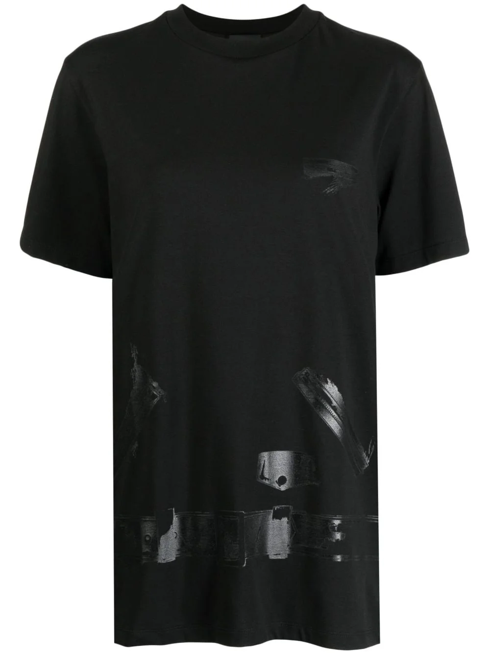 graphic-print round-neck T-shirt Highlights - Black - Cotton blend - All-over graphic print - Round neck - Short sleeves - Straight hem Imported Composition Body: Cotton 65%, Polyester 35% SIZE & FIT Model measurements Height 5 ft 11 in(1.8 m) Bust/Chest 28.34 in(72 cm) Hips 35.43 in(90 cm) Waist 23.62 in(60 cm) Measurement SLEEVE LENGTH 7.87 in(20 cm) Shoulder Width 15.74 in(40 cm) LENGTH 28.34 in(72 cm) BUST 37 in(94 cm) FittingInformation Designed to be unstructured, offering a loose fit throughout Made from a midweight non-stretch fabric, this piece offers minimal elasticity when worn This piece fits true to size – take your usual size Washing instructions Dry Clean Only