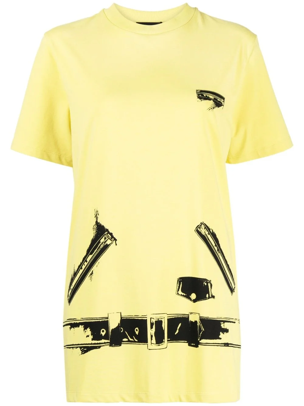 graphic-print short-sleeve T-shirt Highlights - Yellow - Cotton blend - All-over graphic print - Round neck - Short sleeves - Straight hem Imported Composition Body: Cotton 65%, Polyester 35% SIZE & FIT Model measurements Height 5 ft 10 in(1.77 m) Bust/Chest 31.88 in(81 cm) Hips 33.85 in(86 cm) Waist 24.01 in(61 cm) FittingInformation Designed to be unstructured, offering a loose fit throughout Made from a midweight stretch fabric, this piece offers elasticity and flexibility when worn This piece fits true to size – take your usual size Washing instructions Machine Wash