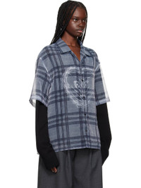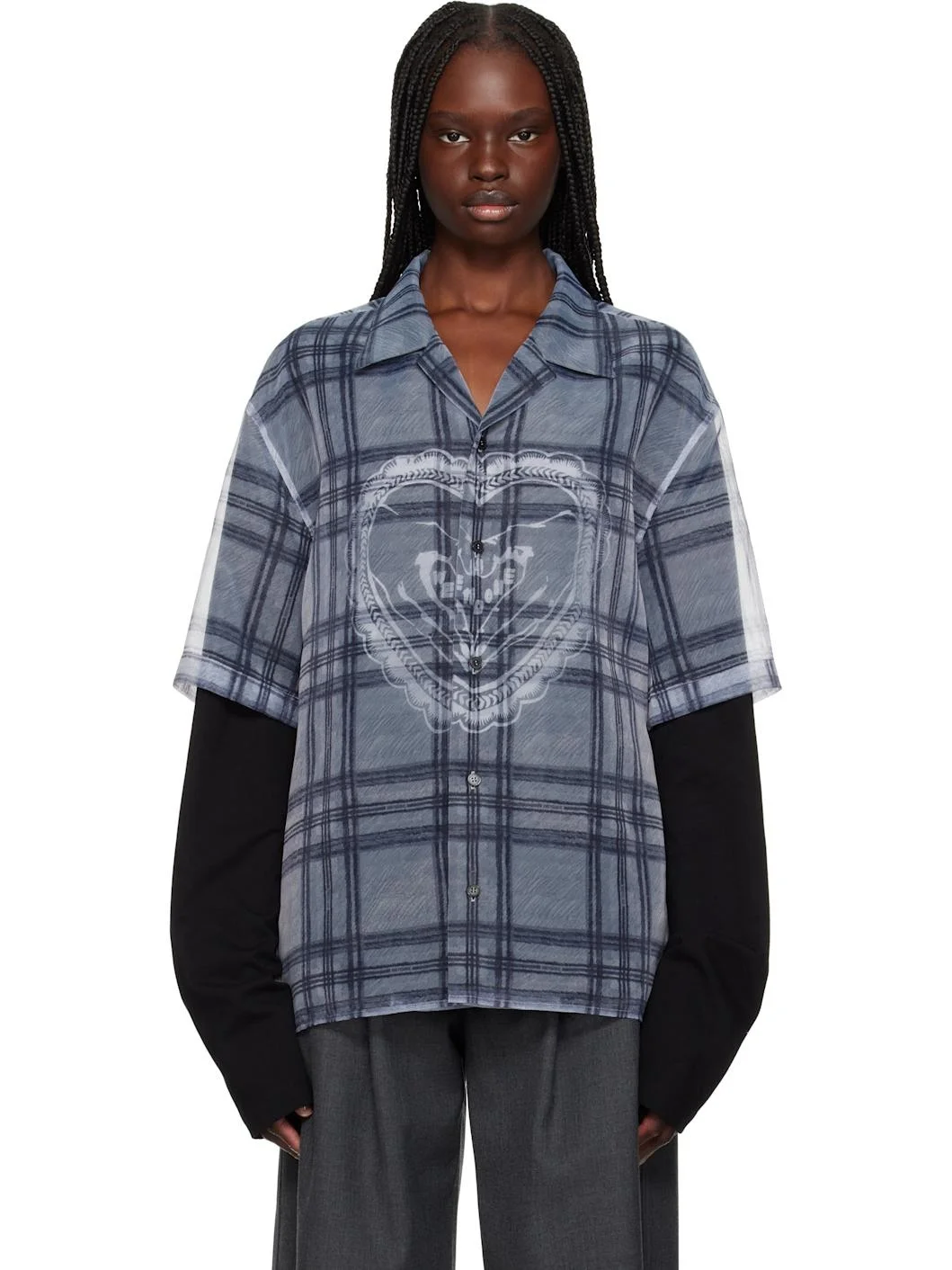 Cotton jersey shirt. Integrated sheer organza shirt overlay. · Check and logo pattern printed throughout · Open spread collar · Button closure · Logo graphic printed at front Supplier color: Grey Body 1: 100% polyester. Body 2: 100% cotton. Made in South Korea 251327F109004