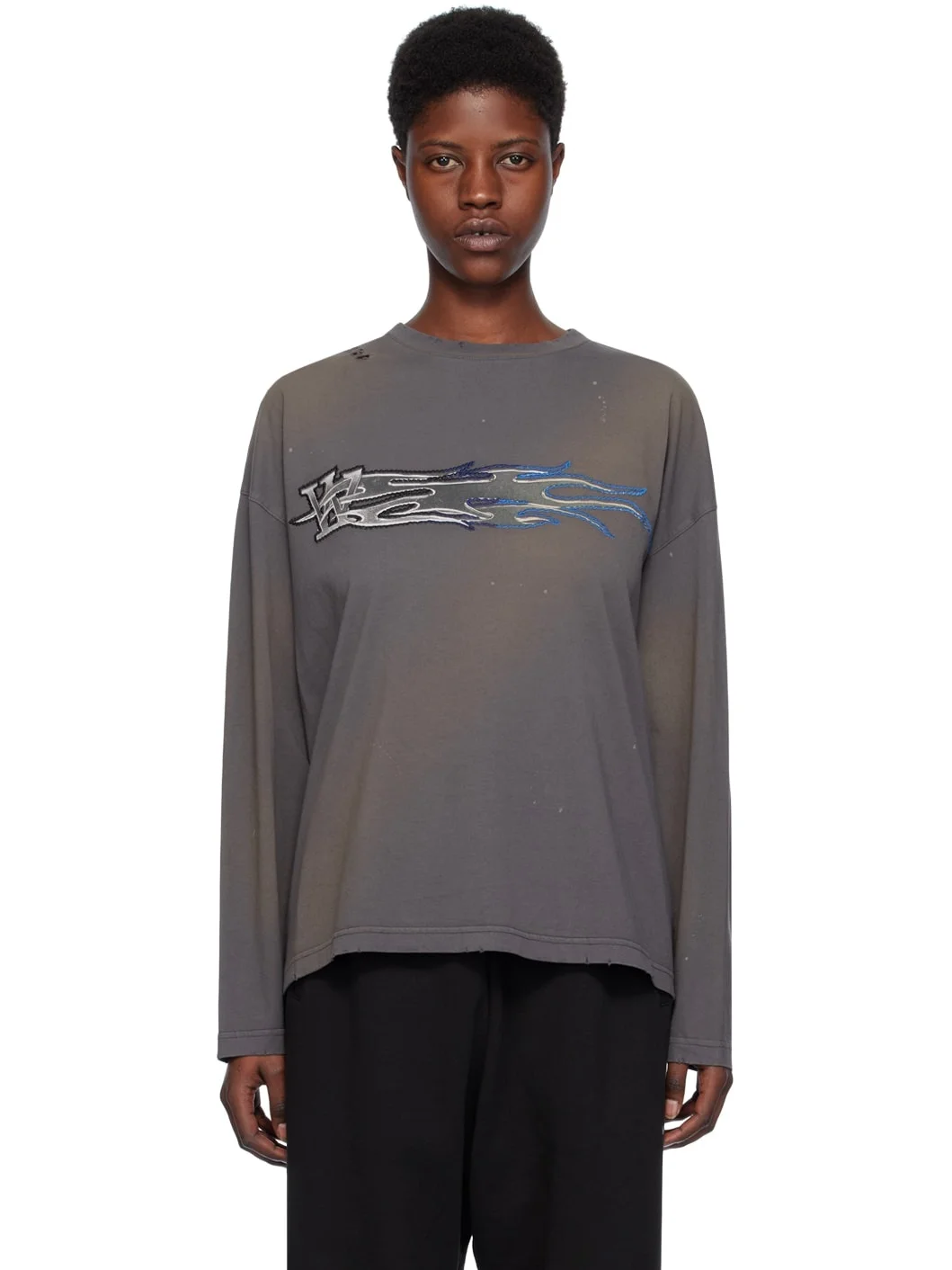 Cotton jersey T-shirt. Fading, distressing, and paint splatter effect throughout. · Rib knit crewneck · Logo printed and embroidered at front · Dropped shoulders Supplier color: Charcoal 100% cotton. Made in South Korea 241327F110012