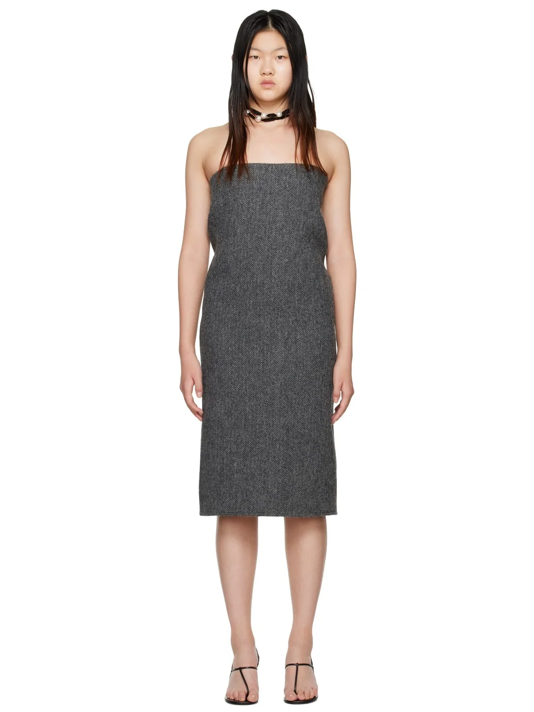 Wool and alpaca-blend herringbone dress. · Straight neck · Zip closure at side seam · Full satin lining Supplier color: Grey Body: 80% wool, 20% alpaca. Lining: 50% rayon, 50% polyester. Made in South Korea 222327F054001