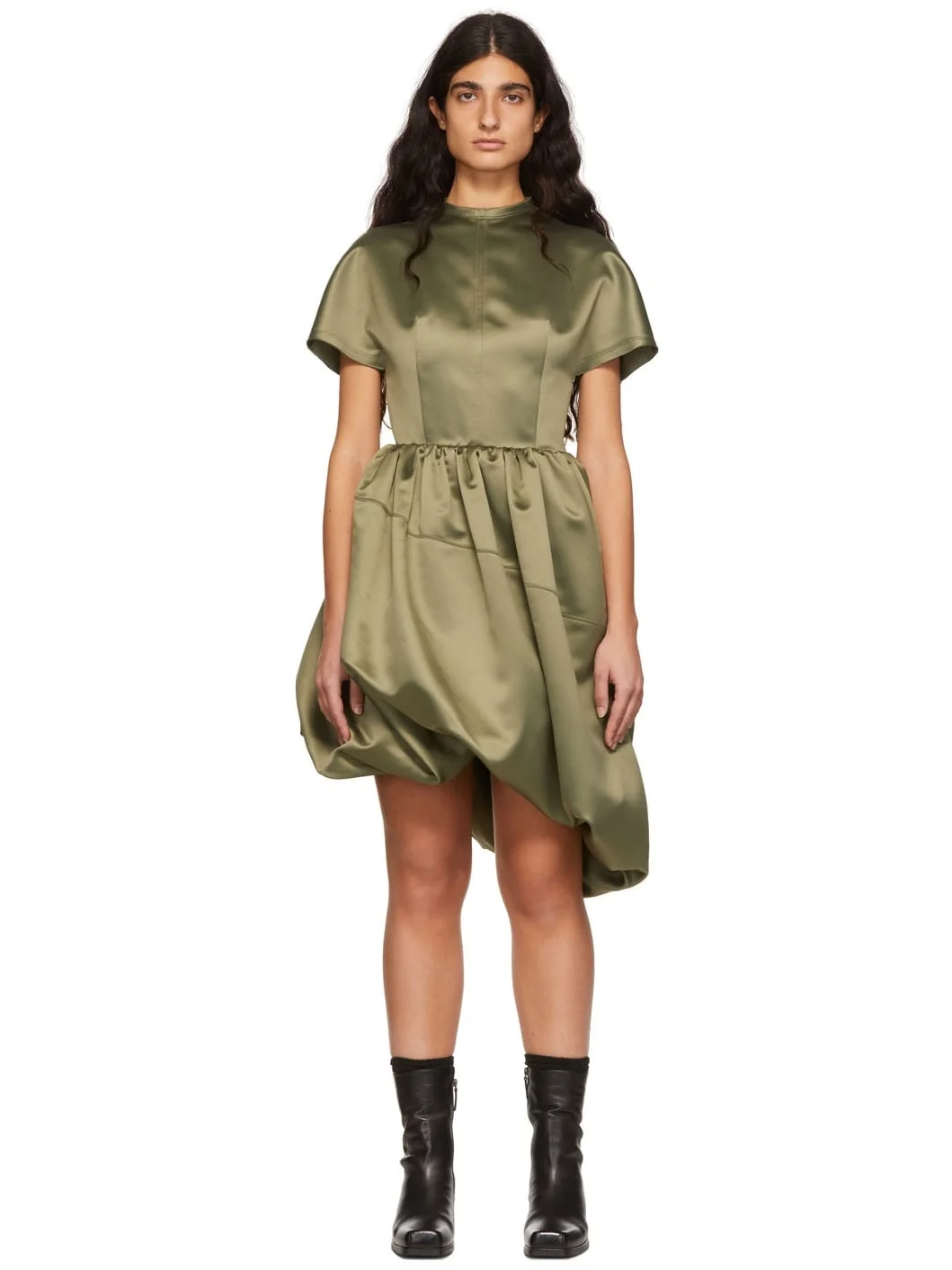 Polyester satin mid-length dress. Raw edges throughout. · Crewneck · Darts at front · Zip closure at side-seam · Gathering at elasticized waist and hem · Press-stud fastening at back · Cut-outs with twisted detailing at back · Asymmetric construction Supplier color: Green 100% polyester. Made in South Korea 221327F052002