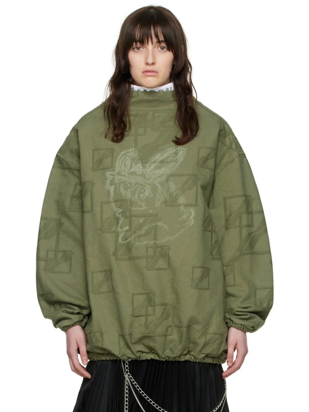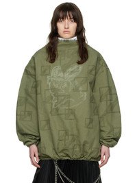 Non-stretch denim blouse. Jacquard woven logo pattern throughout. · Boatneck · Glow-in-the-dark graphic printed at front · Zip vent at shoulders · Rubberized logo patch at back · Elasticized cuffs and hem Supplier color: Khaki Body: 100% cotton. Lining: 100% polyester.