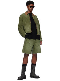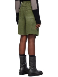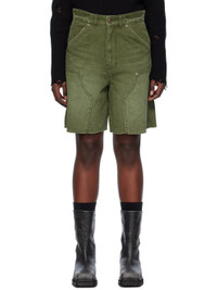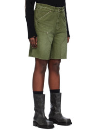 Cotton canvas shorts. Fading and whiskering throughout. · Paneled construction · Belt loops · Five-pocket styling · Zip-fly · Raw edge at cuffs · Patch pocket at outseam · Hammer loop at outseam · Logo embroidered at back Supplier color: Khaki 100% cotton. Made in South Korea 241327F088005
