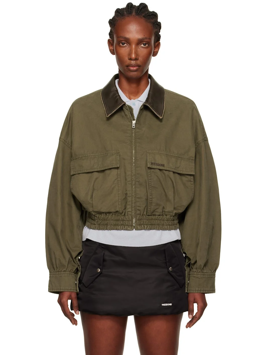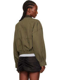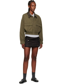 Cotton twill jacket. · Subtle distressing throughout · Grained lambskin spread collar · Zip closure · Flap pockets at waist · Logo embroidered at pocket · Elasticized cropped hem · Dropped shoulders · Press-stud barrel cuffs Supplier color: Khaki Body: 100% cotton. Trim: 100% lambskin. Made in South Korea 252327F063000