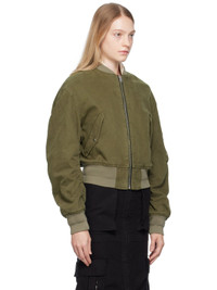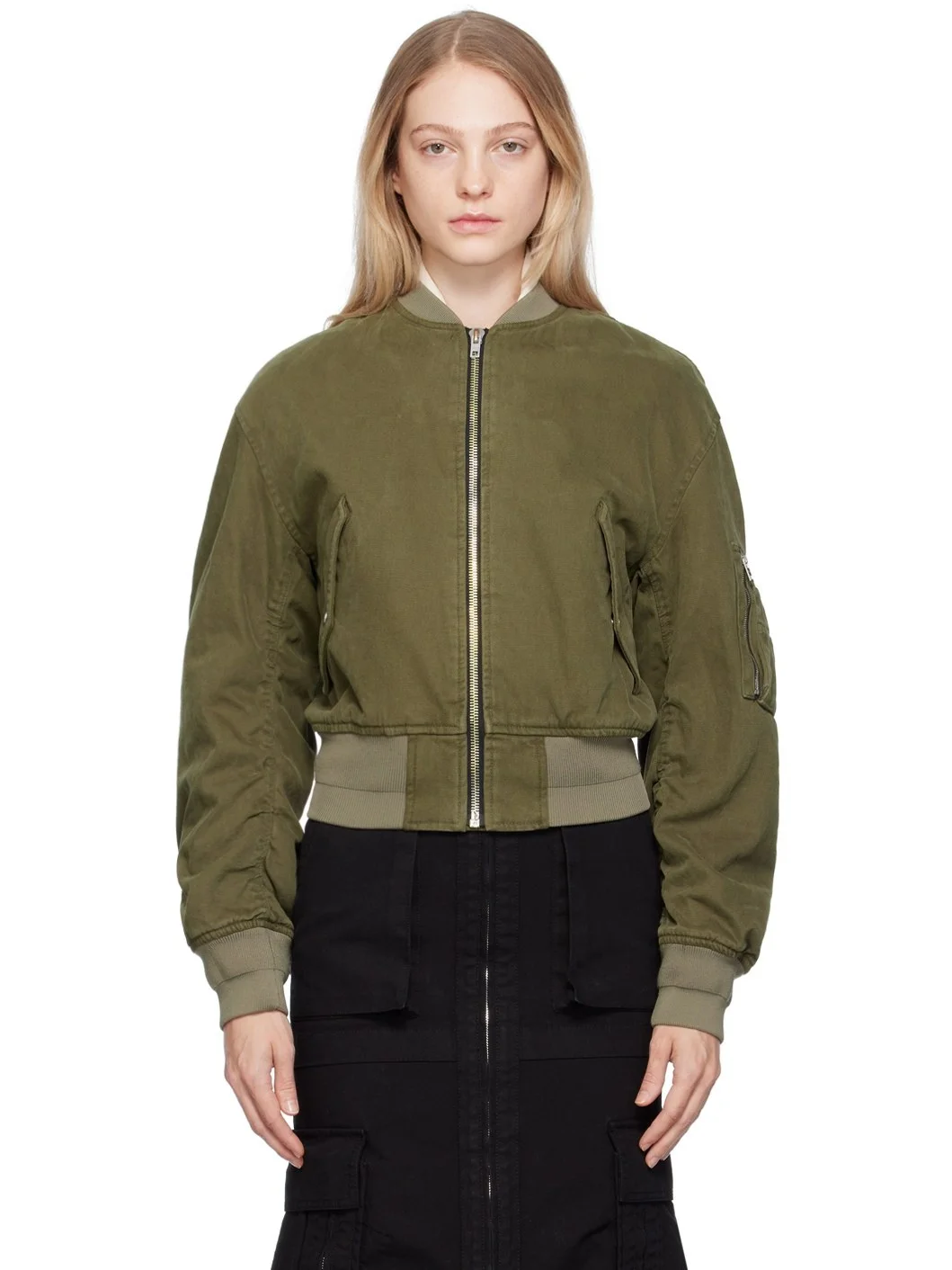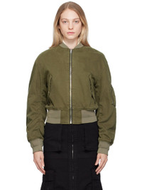 Non-stretch denim jacket. · Rib knit stand collar, hem, and cuffs · Zip closure · Flap pockets · Zip pocket and pen slots at sleeve · Welt pocket at interior · Full twill lining Supplier color: Khaki Body: 100% cotton. Lining: 65% polyester, 35% cotton. Made in South Korea 232327F058001