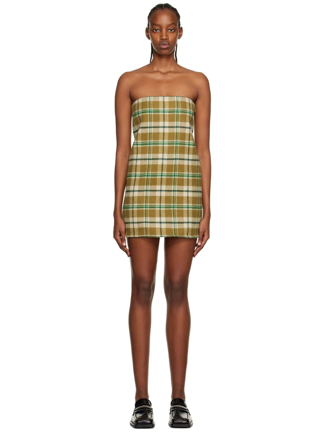 Brushed wool-blend twill dress. Check pattern throughout. · Straight neck · Wire at hem · Zip closure side seam · Full satin lining Supplier color: Khaki Body: 80% wool, 20% nylon. Lining: 100% polyester. Made in South Korea 222327F052002