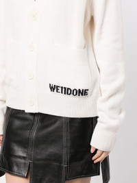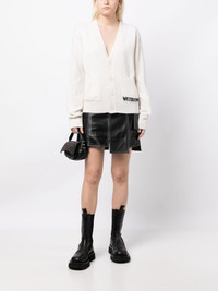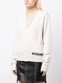 logo-intarsia wool cardigan Highlights - Off-white - Wool - Intarsia-knit logo - Knitted construction - V-neck - Long sleeves - Front button fastening - Ribbed cuffs and hem - Straight hem - Front patch pocket Imported Composition Wool 80% SIZE & FIT Model measurements Height 5 ft 9 in(1.76 m) Bust/Chest 31.1 in(79 cm) Hips 35.03 in(89 cm) Waist 24.4 in(62 cm) FittingInformation Designed to be unstructured, offering a loose fit throughout Constructed with additional length on the sleeve Made with a midweight knit, this piece offers some stretch This piece fits true to size – take your usual size Washing instructions Hand Wash