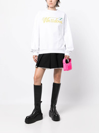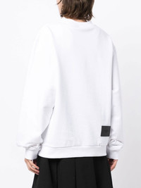 logo-print cotton hoodie white cotton logo print at the chest round neck drop shoulder long sleeves ribbed edge Imported Composition Body: Cotton 100% SIZE & FIT Model measurements Height 5 ft 10 in(1.77 m) Bust/Chest 31.49 in(80 cm) Hips 35.43 in(90 cm) Waist 25.19 in(64 cm) FittingInformation This piece fits true to size. We recommend you get your regular size Cut for an oversized fit Made with a mid-weight fabric Washing instructions Hand Wash