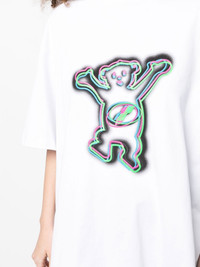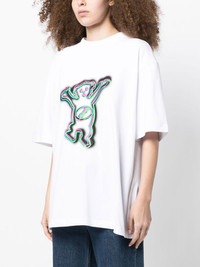 logo print oversized T-shirt white/multicolour cotton graphic print to the front crew neck short sleeves straight hem Imported Composition Cotton 100% SIZE & FIT Model measurements Height 5 ft 10 in(1.77 m) Bust/Chest 31.49 in(80 cm) Hips 35.43 in(90 cm) Waist 25.19 in(64 cm) Measurement SLEEVE LENGTH 9.84 in(25 cm) LENGTH 27.95 in(71 cm) BUST 48.81 in(124 cm) Shoulder Width 21.65 in(55 cm) FittingInformation This piece fits true to size. We recommend you get your regular size Cut for an oversized fit. If you like a tighter fit, get the next size down Made with a mid-weight fabric Washing instructions Hand Wash
