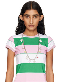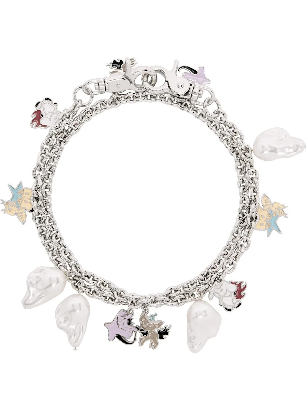 Tiered cable chain necklace in silver-tone brass. · Enameled charms and faux-pearls at length · Lobster-clasp fastenings · L30" Supplier color: Silver Brass. Made in South Korea 252327F023001