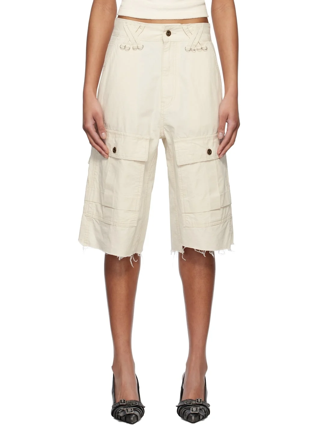Cotton ripstop shorts. Fading throughout. · Mid-rise · D-rings at belt loops · Five-pocket styling · Zip fly · Cargo pockets at front and back · Raw edge at cuffs · Logo-engraved bronze-tone hardware Supplier color: Ivory 100% cotton. Made in South Korea 251327F088000