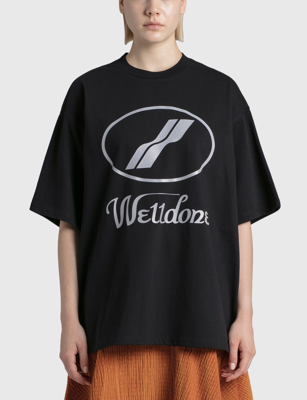 - We11done - We11done Logo T-shirt - Short sleeve - Relaxed fit - Embroidered logo patch on the front and back - Tonal stitching - Color: Black - Material: 100% Cotton SIZING - Model wears size S - Model measures: Height 178cm, Chest 32.5"/82.5cm, Waist 24.5"/62cm, Hip 36"/91cm
