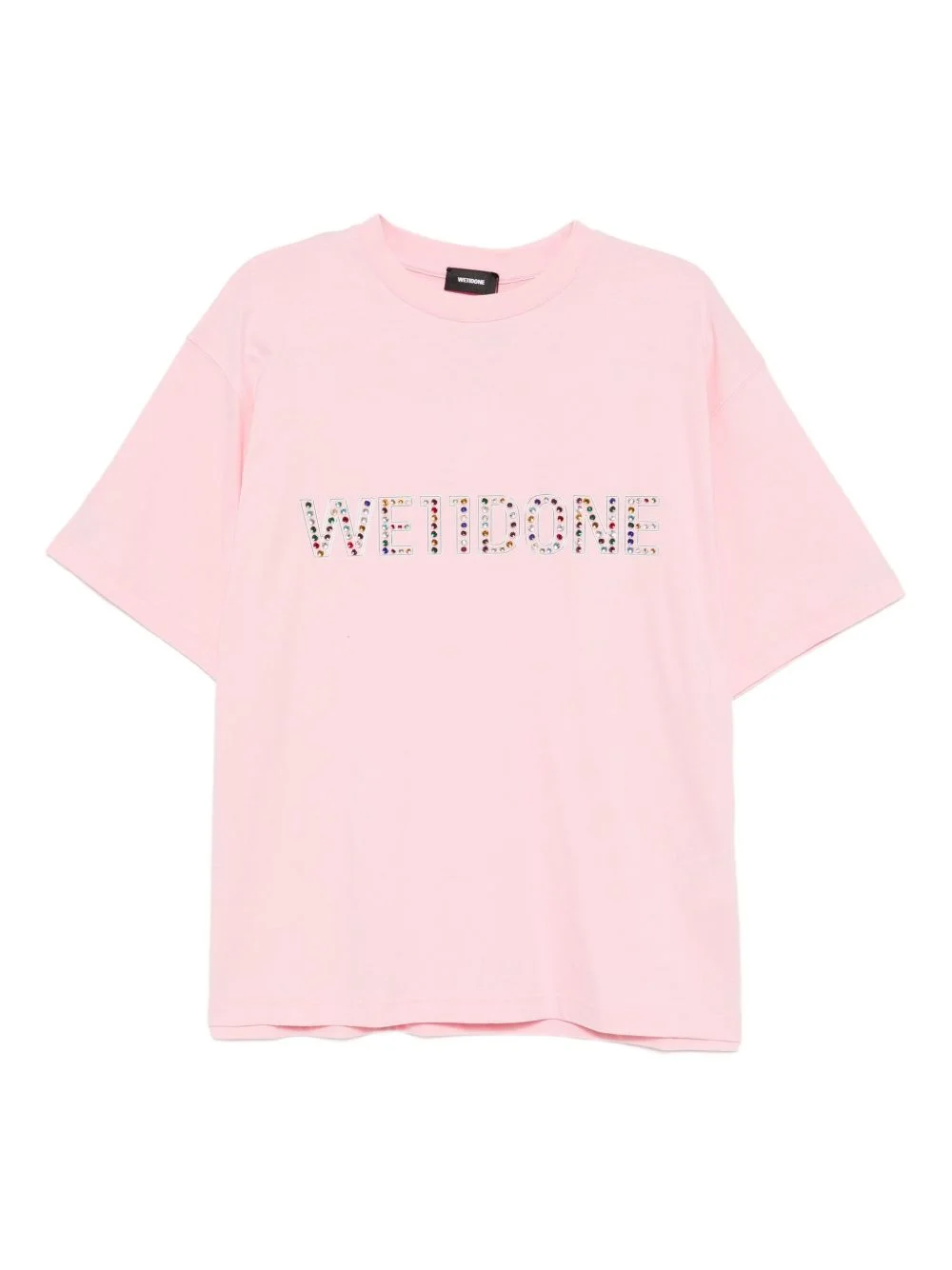 logo-print T-shirt Highlights - Blush pink - Crystal embellishment - Crew neck - Short sleeves Imported Composition Cotton 100% Washing instructions Hand Wash