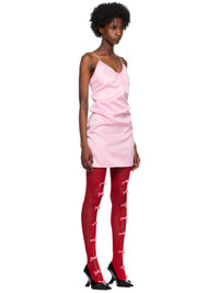 Polyester satin dress. Gathering throughout. · V-neck · Zip closure at side seam · Fixed spaghetti straps · Full twill lining Supplier color: Pink Body: 100% polyester. Lining: 100% rayon. Made in South Korea 231327F052002