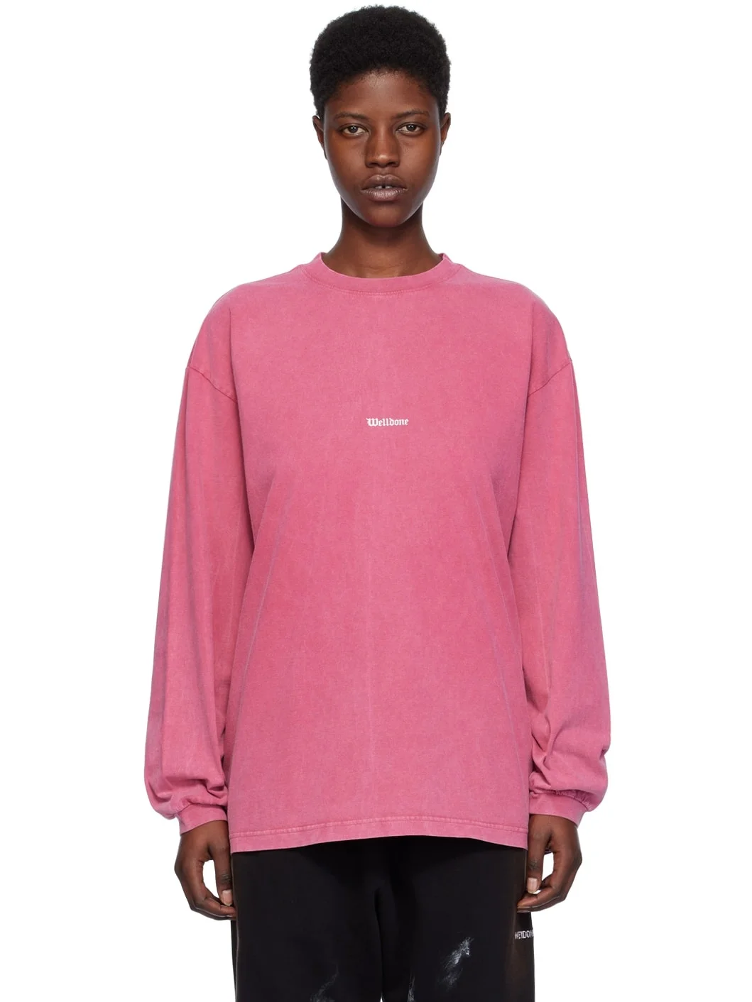 Cotton jersey long sleeve T-shirt. Fading throughout. · Rib knit crewneck and cuffs · Logo printed at front · Graphic printed at back Supplier color: Pink 100% cotton. Made in South Korea 241327F110023