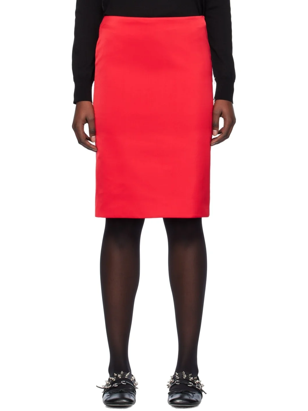 Polyester satin skirt. · Low-rise · Zip closure at side-seam · Central vent at back Supplier color: Red 100% polyester. Made in South Korea 241327F092000