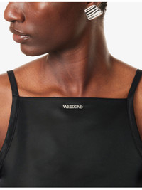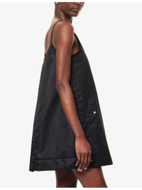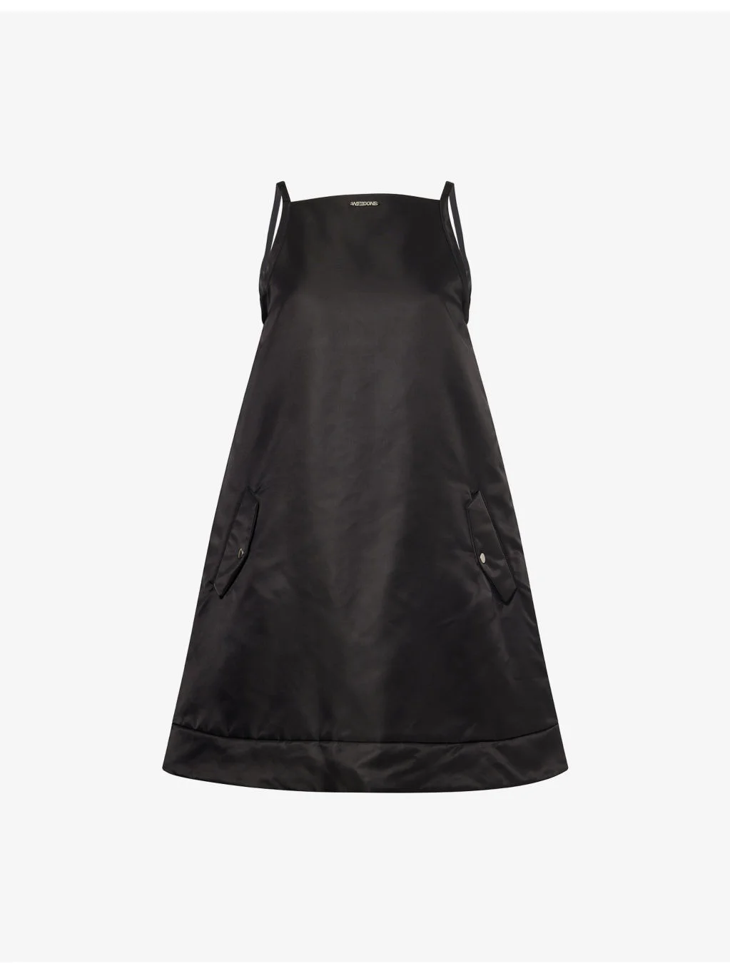 PRODUCT DETAILS - WE11DONE shell mini dress - 100% nylon; lining 100% polyester - Relaxed fit, A-line silhouette, square neckline, sleeveless, two buttoned pockets at front, pleated at back, all-over padded, fully lined, flared hem - Dry clean - True to size - Size small: length 32in / 82cm - Model is 5ft 10in/1.78m and wears a size small - Midweight, non-stretch Ref: R04485075