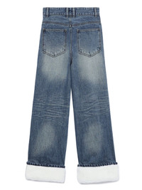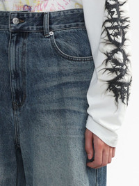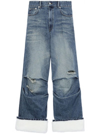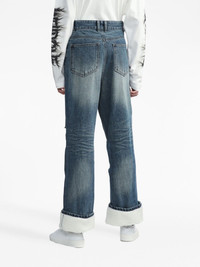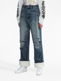 ripped straight-leg jeans Highlights - Navy blue - Cotton - Dark wash - Whiskering effect - Ripped detailing - Contrasting panel detail - High waist - Straight leg - Front button and zip fastening - Classic five pockets - Turn-up hem Imported Composition Cotton 100% Washing instructions Read Manufacturer Guidelines
