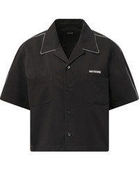 Introducing our Short-Sleeved Convertible Shirt in Black - the versatile shirt for any occasion. Made with high-quality materials, this shirt can easily transition from a casual day out to a formal event. Stay cool and stylish with its short-sleeve design. - Composition: 69% Cotton, 25% Polyester, 6% Nylon - Front button fastening - Embroidered logo on the chest - Chest pocket - Short sleeves - Made in South Korea Model is 175 cm and wears size S SKU: WDSH025142WBK