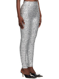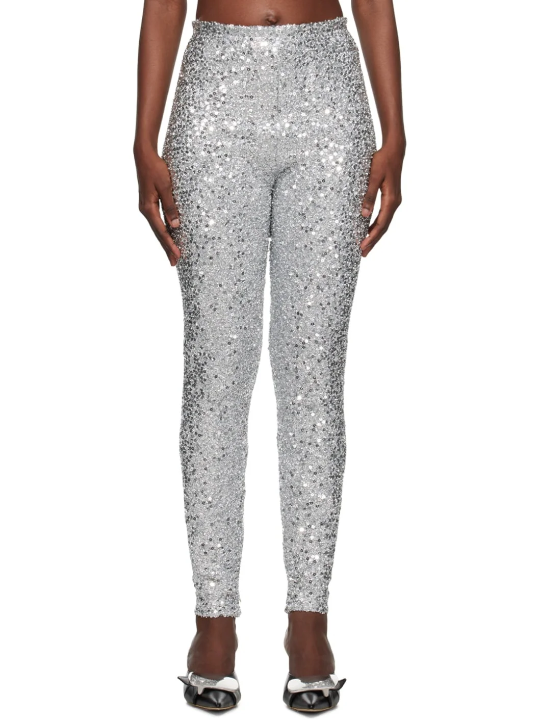 Knit polyester leggings. Sequins and metallic thread detailing throughout. · Elasticized waistband · Full stretch nylon jersey lining Supplier color: Silver Body: 100% polyester. Lining: 65% nylon, 35% polyurethane. Made in South Korea 232327F085001