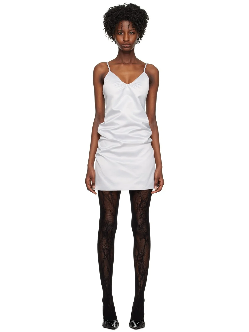 Polyester satin dress. Gathering throughout. · V-neck · Zip closure at side seam · Fixed spaghetti straps · Full twill lining Supplier color: Silver Body: 100% polyester. Lining: 100% rayon. Made in South Korea 231327F052005