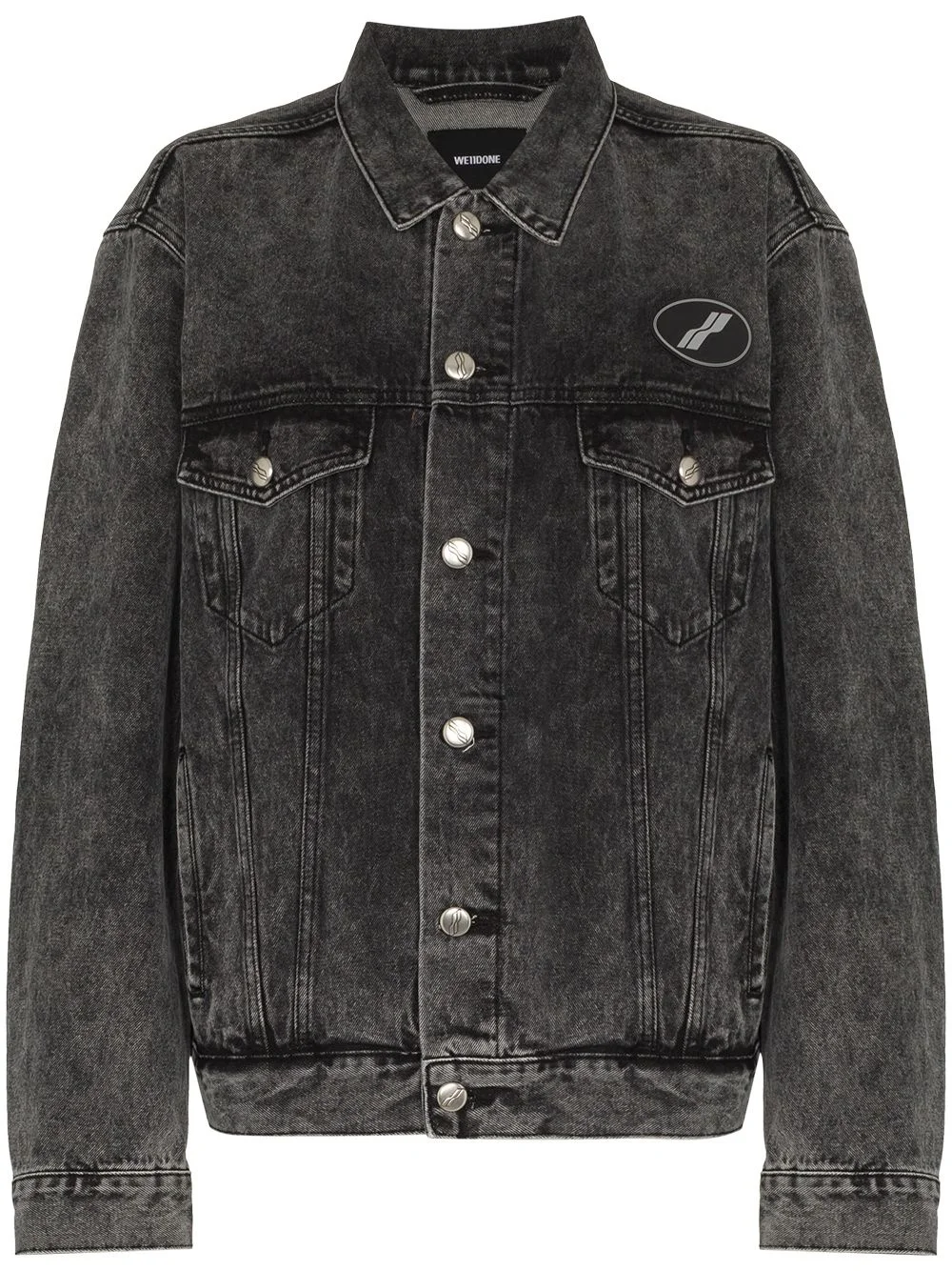 logo patch denim jacket black cotton front button fastening logo patch to the front two chest flap pockets two side slit pockets long sleeves buttoned cuffs Imported Composition Cotton 100% SIZE & FIT Model measurements Height 5 ft 10 in(1.78 m) Bust/Chest 30.7 in(78 cm) Hips 33.85 in(86 cm) Waist 22.44 in(57 cm) Measurement SLEEVE LENGTH 25.98 in(66 cm) LENGTH 27.55 in(70 cm) WAIST 53.54 in(136 cm) BUST 55.9 in(142 cm) Shoulder Width 22.44 in(57 cm) FittingInformation This piece fits true to size. We recommend you get your regular size Cut for an oversized fit Made with a mid-weight non-stretch fabric Washing instructions Dry Clean Only
